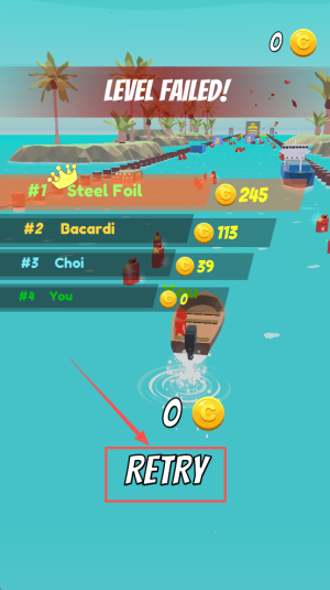 4、重新挑战:当界面显示“LEVEL FAILED!”,点击“RETRY”立即重开曲目。