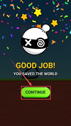 4、完成救援:当界面显示“YOU SAVED THE WORLD”,点击“CONTINUE”进入下一关。