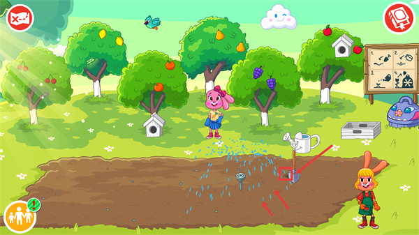 3、把【种子袋】中的种子对应播撒到农田的种植坑中,完成播种环节以培育作物。