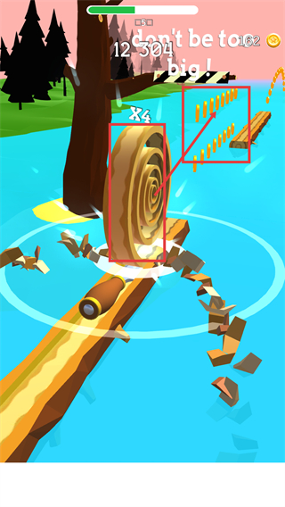 1、获取【x4】道具后,金币收益会翻倍,同时切削出的螺旋木板可收集大量金币,助力数值提升至【12304】。