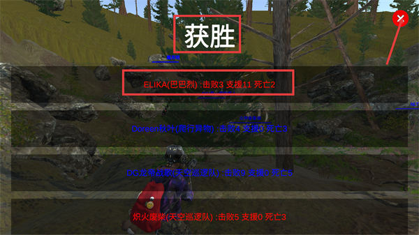 4、对局胜利后会显示战绩面板,可查看己方(如【ELIKA(巴巴烈)】)的击败、支援数据,总结对局表现以优化后续策略。
