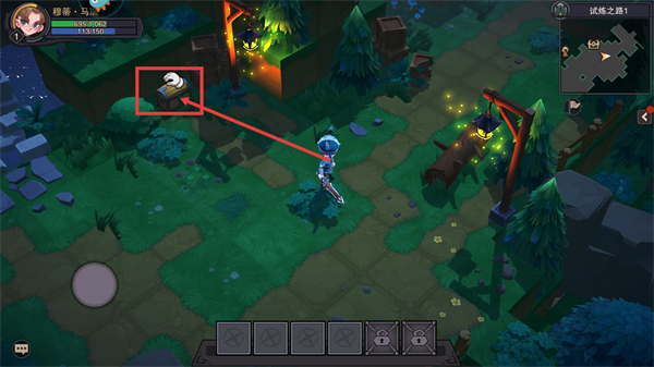 3、在场景中找到标注的交互物,操控角色移动至其位置,触发互动来获取资源或推进探索进度。