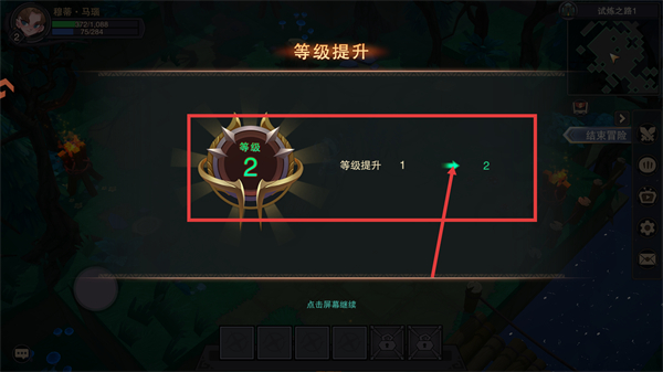 4、完成战斗后触发【等级提升】,等级从1升至2,点击屏幕继续即可生效,同时属性会得到相应增强。