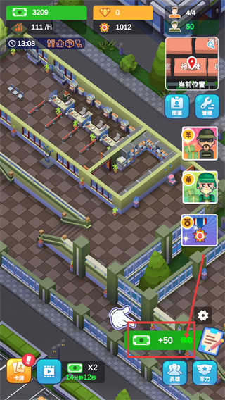 4、完成对应操作后,点击界面的【+50-领取】按钮,可获取50货币奖励,积累资源用于后续设施升级。