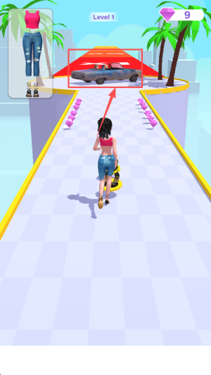 1、熟悉核心操控:掌握跑酷移动与服装拾取的基础操作,明确“完成搭配指南、冲刺终点通关”的核心目标。