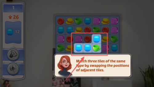 4、完成目标:当界面显示任务“match three tiles”,拖动瓷砖完成三连消除即可过关。