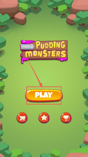 1、启动游戏:点击“PUDDING MERGE MONSTERS”界面的“PLAY”按钮进入。