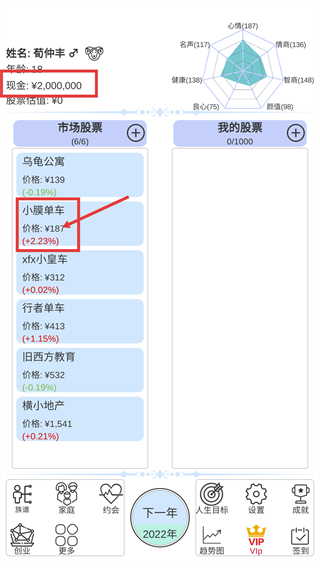1、支持多角色自由挑选,每个角色都搭载专属的人物背景与初始设定,不同的开局条件为炒股经营之路提供差异化思路。