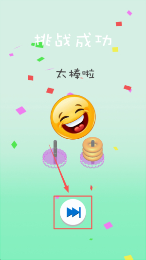3、完成挑战:在关卡中成功套中目标,系统提示“排战成功 大棒啦”,即可通关。