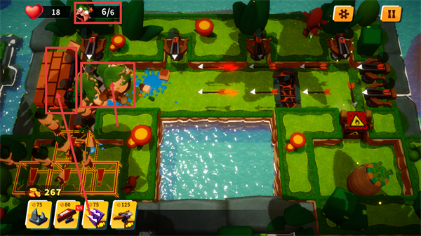 2、利用地形(如水域)分隔敌方路线,调整防御单位朝向,提升【164-金币】获取效率以补充防线。