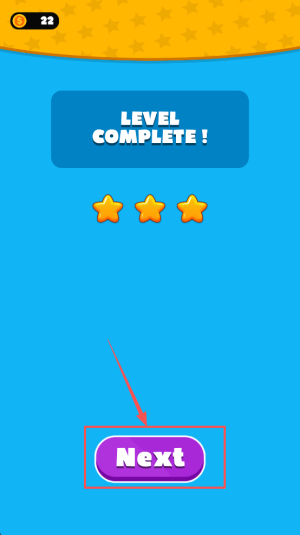 4、领取通关:成功完成后,系统显示“LEVEL COMPLETE!”,点击“Next”按钮进入下一关。