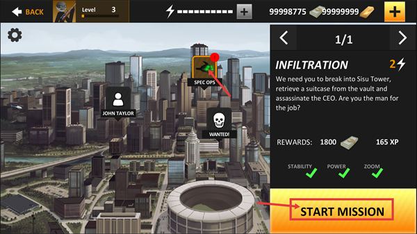 1、接取【INFILTRATION】任务后,目标是潜入【Sisu-Tower】窃取手提箱并刺杀CEO,完成可获1800资源与165XP。