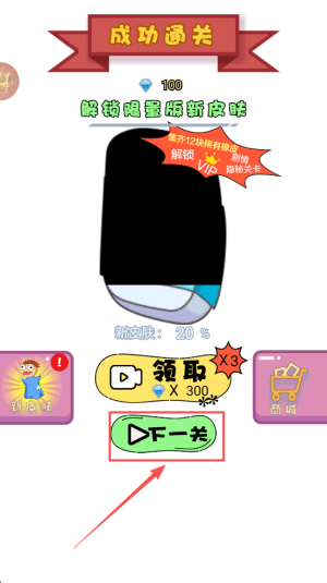 4、领取奖励:成功通关后,系统显示“成功通关 100”,点击“领取”按钮获得新皮肤。
