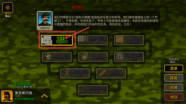 1、进入使命包3界面后,优先接取【收集3个-地图碎片】任务,这是推进“寻找绿色贝雷帽”主线的前置步骤。