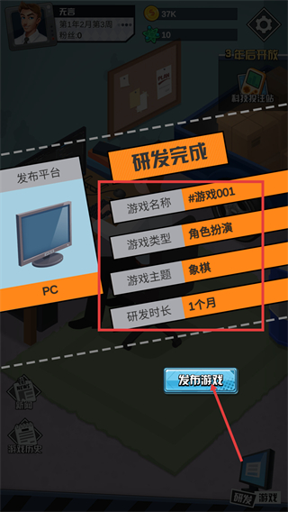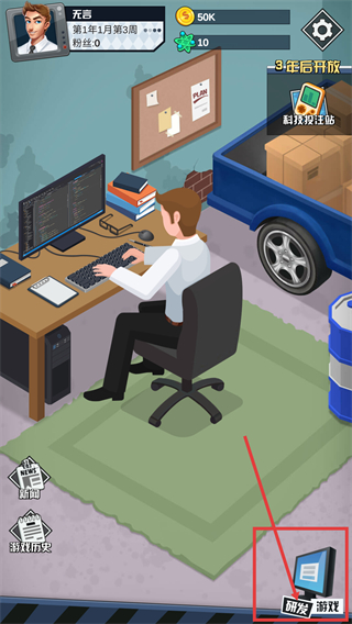 1、点击界面中的【研发游戏】选项,开启游戏研发流程,此操作无初始成本。