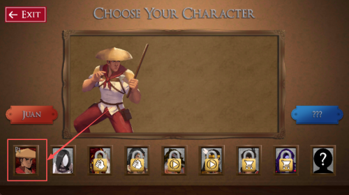 3、选择角色:进入角色选择界面,点击你想要扮演的角色,如“JUAN”,然后点击“???”按钮确认选择。