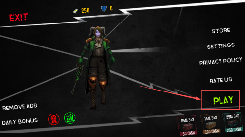 1、进入主菜单:启动游戏后,你会看到角色选择界面,点击“PLAY”按钮进入主菜单。