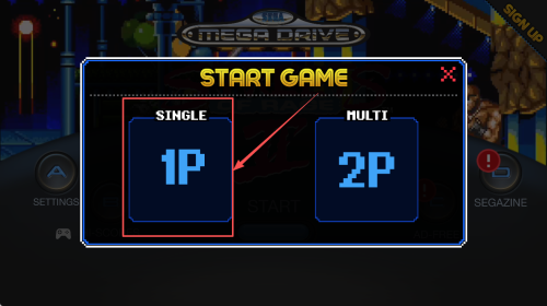 4、选择游戏模式:在开始游戏界面,选择“1P”进行单人游戏或“2P”进行双人游戏。