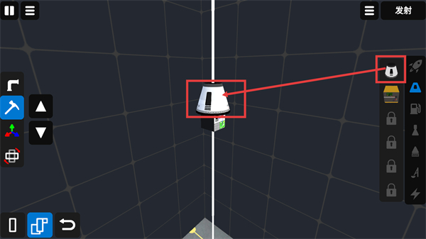 3、继续装配航天器,从右侧栏选择容器、工具等模块,依次添加到已装配的舱体下方,完善航天器结构。