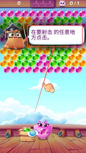 2、瞄准射击:在关卡界面,按照“在要射击的任意地点点击”提示,点击屏幕发射水柱。