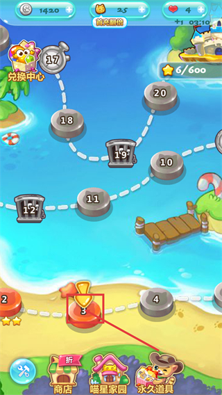 1、点击【3】号关卡入口进入对应关卡,同时可通过【兑换中心】用道具兑换奖励,推进关卡解锁进度。