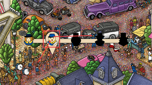 1、在人群车辆密集场景中,锁定带标识的框选角色,点击该角色可触发关键任务交互。
