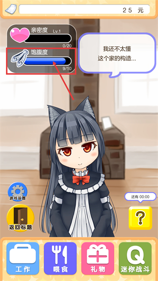 3、养成节奏轻松舒缓,无需高强度操作,工作赚钱、投喂互动等玩法可自由安排,适配碎片化时光。