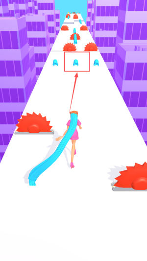 3、主动拾取道具:留意赛道上的长发增益道具,及时拾取延长头发长度,为闯关提供保障。