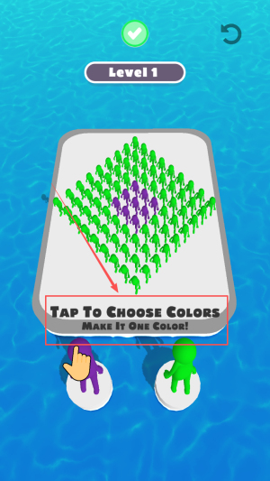 2、查看提示:在关卡界面,阅读“TAP TO CHOOSE COLORS MAKE IT ONE COLOR!”提示,了解目标。