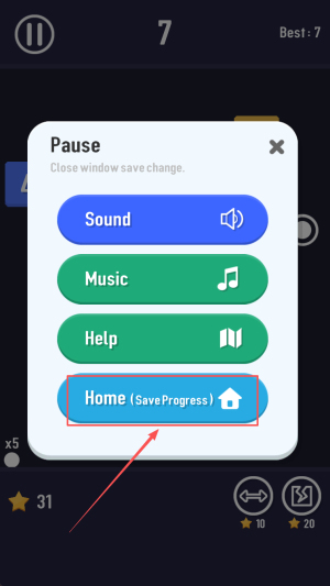 4、设置保存:点击右上角“Pause”按钮,进入设置界面,点击“Home(SaveProgress)”保存进度并返回主菜单。