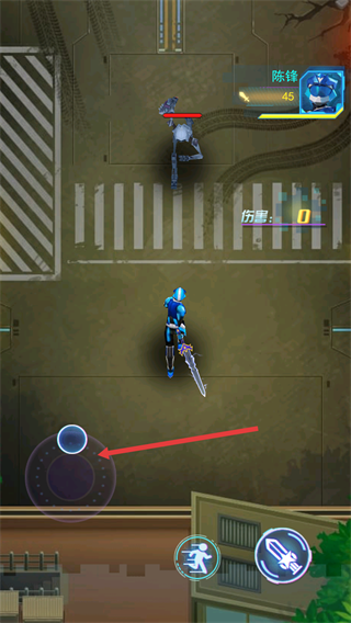 2、操控【陈锋】角色,底部虚拟按键可移动,准备释放技能发起攻击。