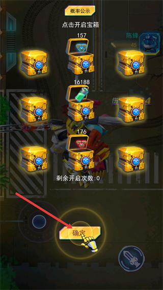 4、战斗后开启宝箱获取奖励,领完奖励点击【确定】,即可结束本次宝箱开启流程。