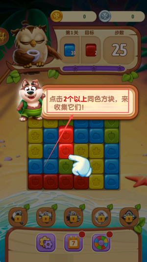 1、熟悉核心操控:掌握同色方块匹配消除的基础操作,明确“推进关卡、获取福利”的核心目标。