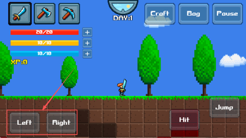 3、控制角色移动:使用左下角的“Left”和“Right”按钮来控制角色移动。