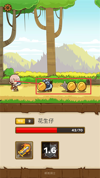 3、击败野怪后会掉落【金币】【道具】等奖励,此时角色生命值降至【42/70】,需注意后续战斗的生存状态。