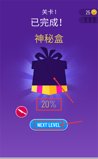 4、关卡完成后可获得【神秘盒】奖励,点击【NEXT-LEVEL】进入下一关,继续挑战新的切割任务。