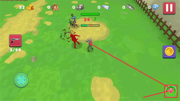 3、战斗时注意右下角的治疗图标,当角色血量不足时点击它,配合【5/99】弹药的武器持续作战。