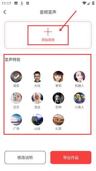 3、在音频变声页,点击【添加音频】按钮,就能打开音频选择的资源页面啦。
