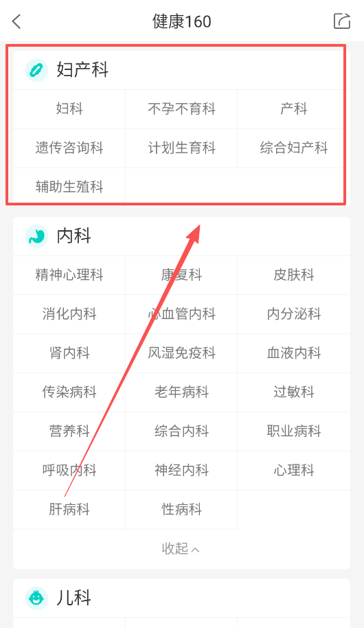 3、需要挂号时,在科室列表如“内科”下,仔细查找心血管、呼吸等子科室,找到目标后点击进入。