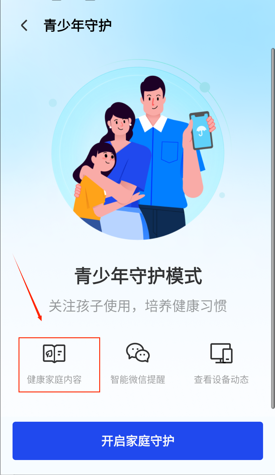 1、点击健康家庭内容图标进入内容库,这里收录了丰富优质的教育资源,包括适龄的动画片、科普视频、电子书籍等。