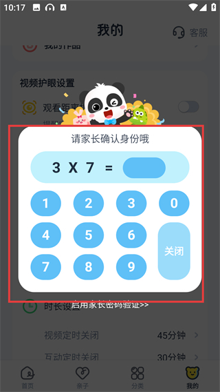 3、在家长身份确认弹窗中,输入算式【3×7】的结果完成验证,就能进入禁用时段设置页哦。