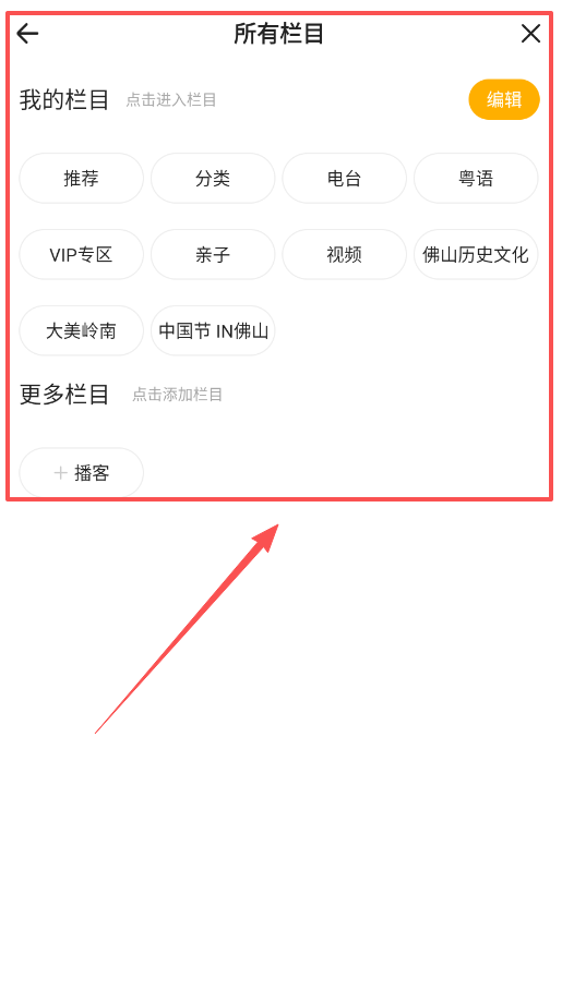 二、想找更多内容的话,就点底部第二个图标“互动”进入栏目页面,这里可以管理“我的栏目”,默认有推荐、分类、电台这些。