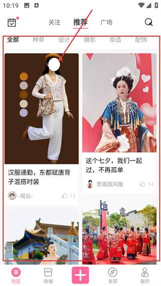 1、在社区推荐页点感兴趣的内容卡片,能进入详情页查看穿搭分享,还能互动交流哦。