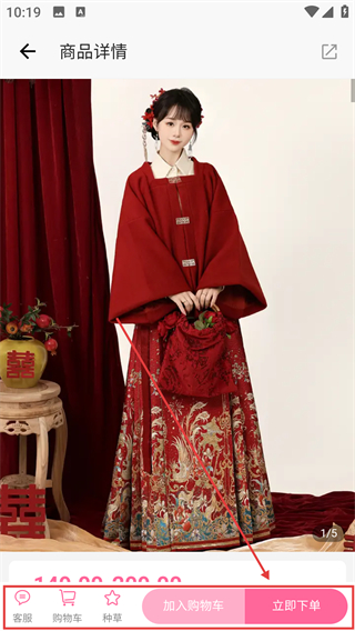 4、进入商品详情页后,确认款式信息,点【立即下单】就能购买,也能先加入购物车囤货啦。