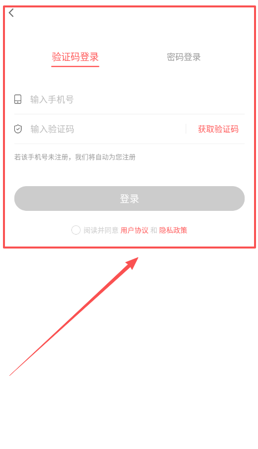 1、首先呢,打开软件后你会看到登录界面,输入手机号后点击获取验证码,最后点击登录按钮就可以进入主界面了。
