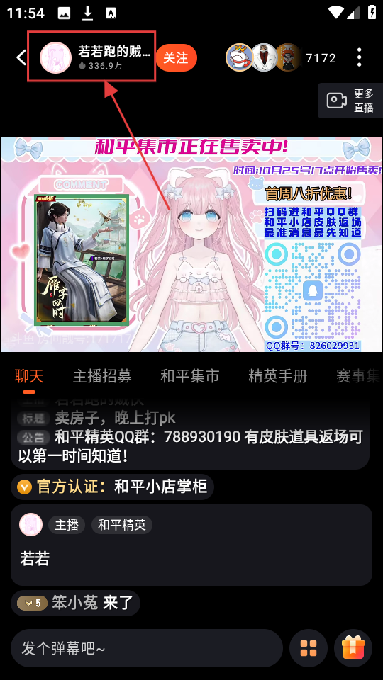 2、进入直播间后点击主播头像,就能进入主播个人主页,查看主播信息啦。