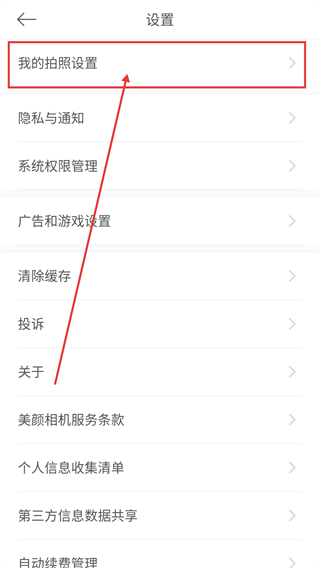 3、在设置页面中,点击【我的拍照设置】选项,可进入拍照相关的配置界面,调整拍摄参数啦。