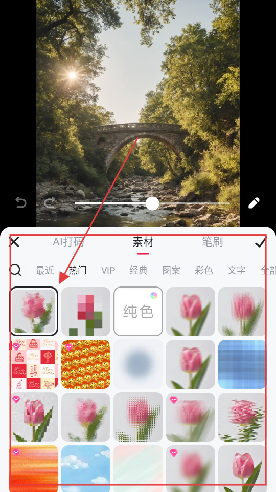 2、进入马赛克页面后,可选择素材,如热门素材中的各类马赛克样式,选择喜欢的即可哦。