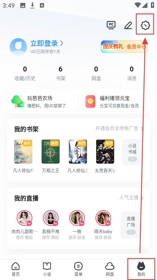 1、在【我的】页面,若想调整字体,就点击右上角的设置图标,进入设置界面开启后续操作吧。