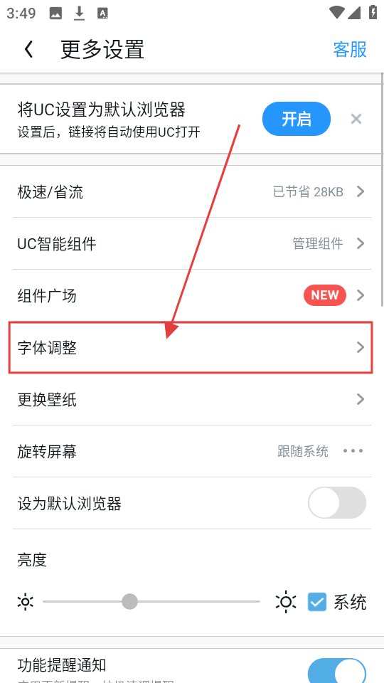 2、进入设置界面后,找到【字体调整】选项,点击它就能进入字体调整的相关页面啦。